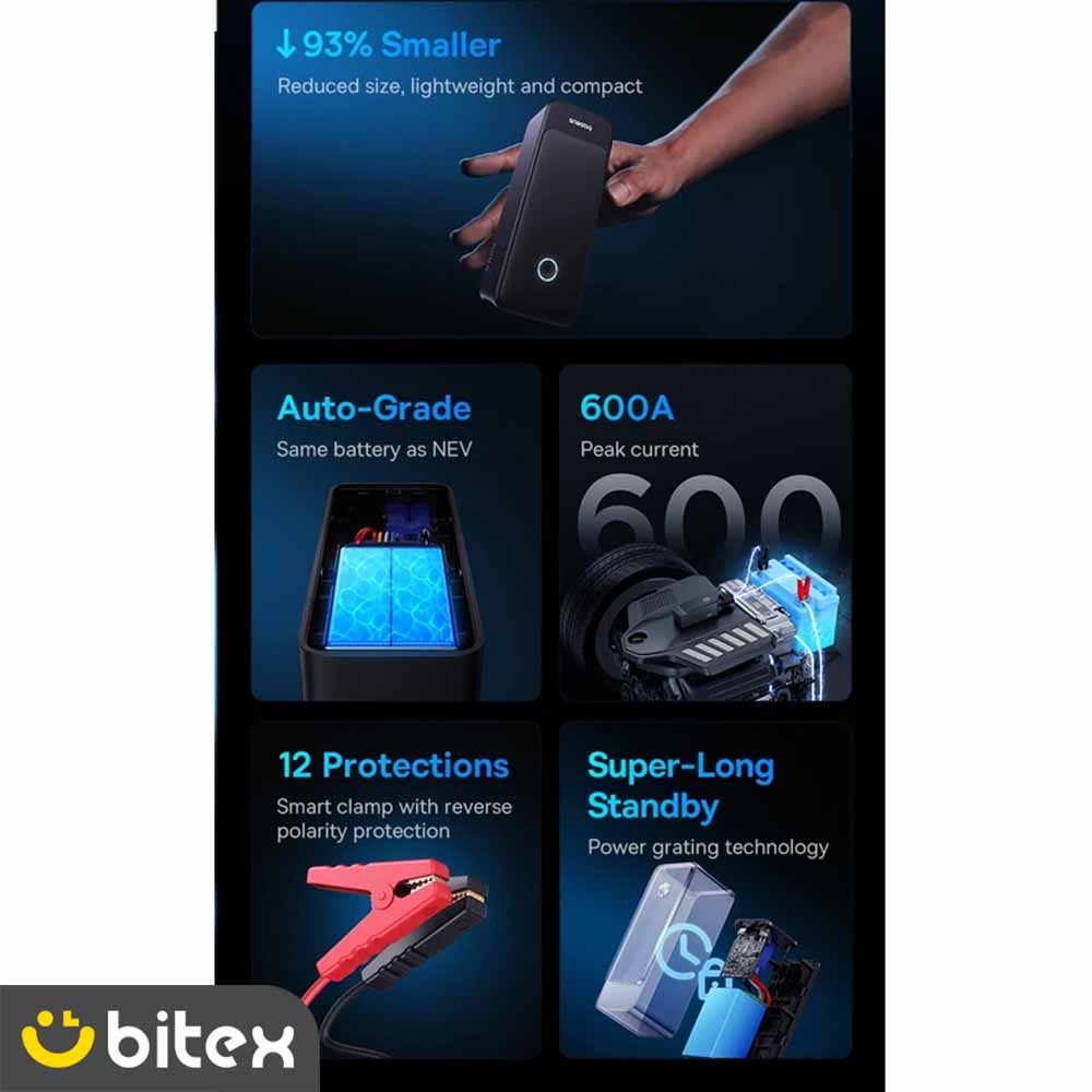 تجربه ناخوشایند استارت نخوردن خودرو در موقعیتهای حساس، دلیلی است که داشتن یک جامپ استارتر قابل اطمینان را به یک ضرورت تبدیل میکند. جامپ استارتر بیسوس مدل BS-CH006 از سری “سوپر انرژی آلفا” (Super Energy Alpha Series)، با تمرکز بر تعادل میان قدرت و ابعاد طراحی شده است. این دستگاه مشکی کیهانی، نه تنها یک فرشته نجات برای باتری خودروی شماست، بلکه به عنوان یک منبع انرژی پشتیبان (پاوربانک) و چراغ اضطراری نیز در جاده همراه هوشمند شما خواهد بود.