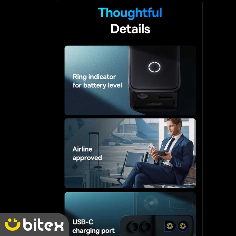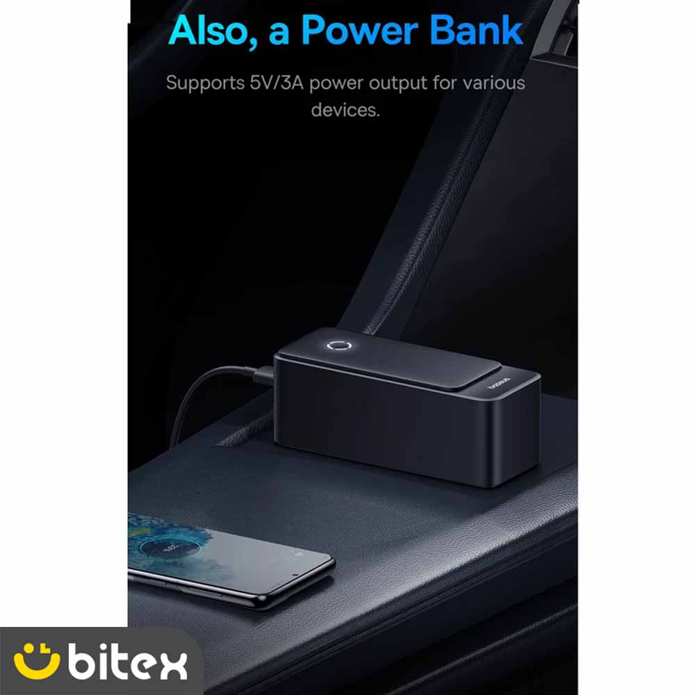 علاوه بر وظیفه اصلی، جامپ استارتر بیسوس مدل BS-CH006 یک پاوربانک کارآمد است. با پورت خروجی USB-A که شدت جریانی معادل 5V/3A ارائه میدهد، میتوانید انواع گوشیهای هوشمند و تبلتها را در سفرهای جادهای شارژ کنید. همچنین خود دستگاه از طریق پورت Type-C با سرعت بالایی شارژ میشود.