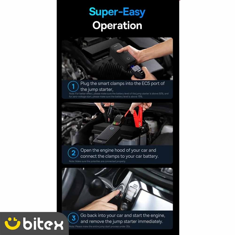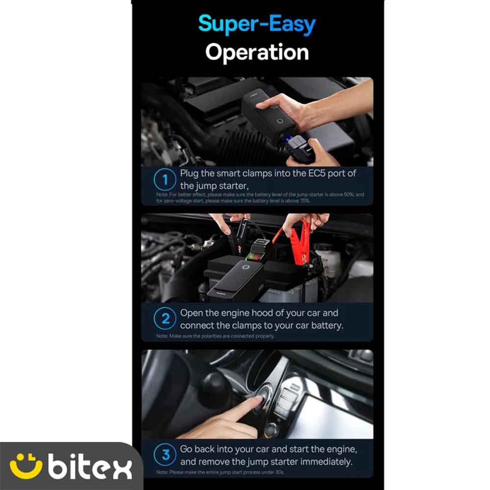 رعایت نکات زیر برای حفظ طول عمر جامپ استارتر بیسوس مدل BS-CH006 و جلوگیری از آسیب به خودرو الزامی است: