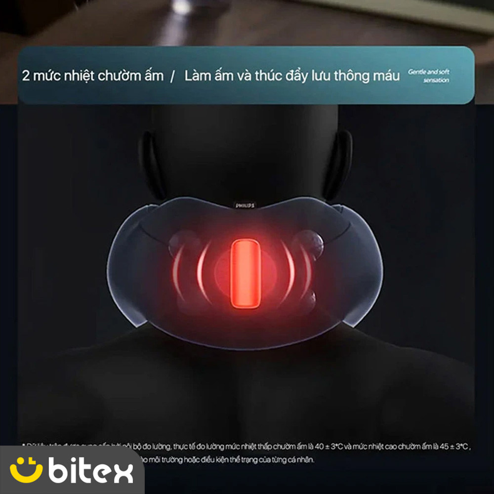 فیلیپس با آگاهی از تأثیر گرما بر تسکین عضلات، قابلیت گرمایش را نیز در این ماساژور تعبیه کرده است. ماساژور گردن فیلیپس مدل PPM3502 دارای دو سطح گرمایش قابل تنظیم است: ۴۰ درجه سانتیگراد و ۴۵ درجه سانتیگراد. این کمپرس گرم ملایم و تسکیندهنده در ناحیه گردن و شانهها: