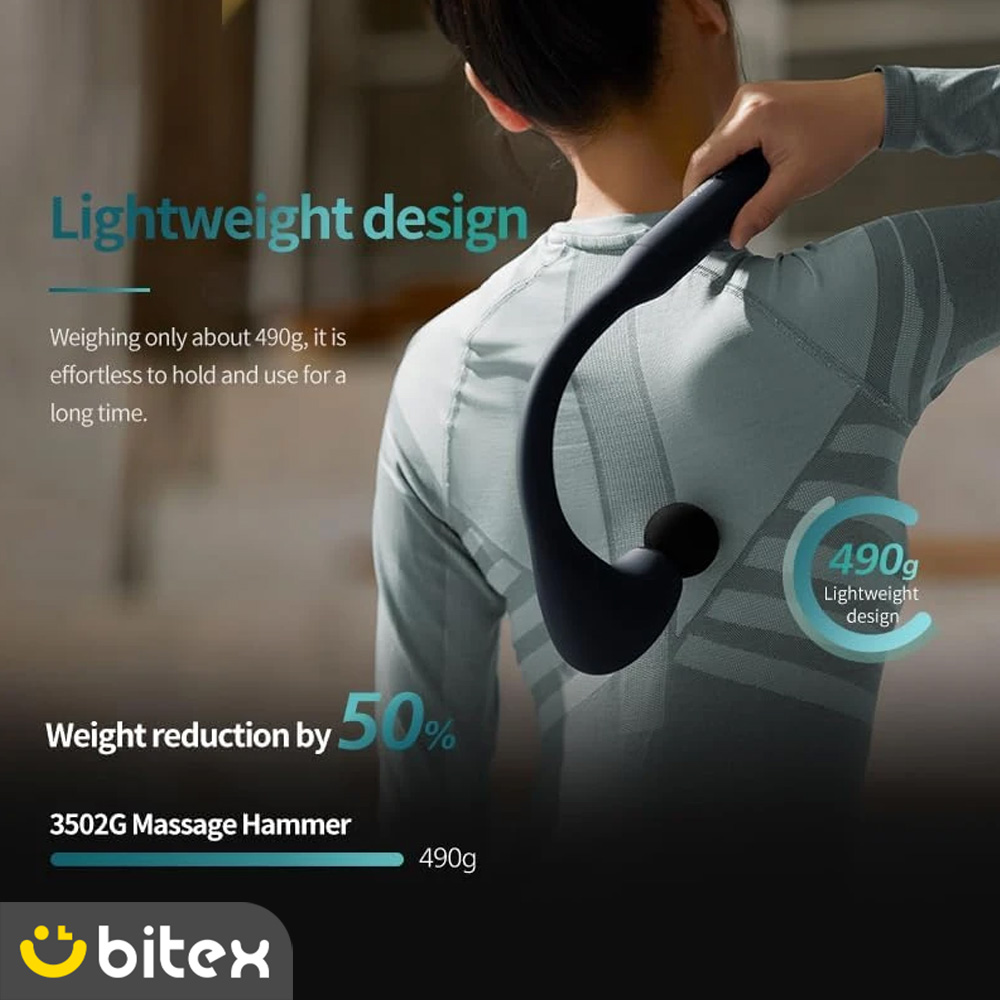 - وزن بهینه و قابلیت حمل: با وزن خالص حدود ۴۹۰ گرم، این ماساژور سبک بوده و علیرغم دسته بلند، ارگونومی آن بهبود یافته است. این طراحی باریک و سبک، حمل و نقل آن را آسان کرده و استفاده طولانی مدت را بدون خستگی فراهم میسازد.
