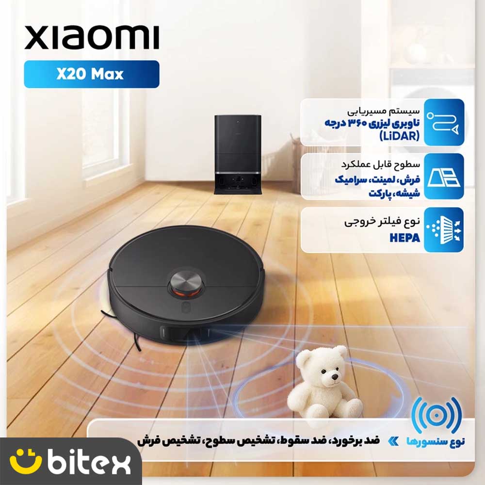 جارو رباتیک شیائومی مدل Robot Vacuum X20 Max فراتر از یک ابزار نظافتی ساده، یک انقلاب در اتوماسیون خانگی است. این مدل با ارتقای چشمگیر قدرت مکش به ۸۰۰۰ پاسکال، خود را به عنوان یکی از قدرتمندترین جاروهای رباتیک جهان معرفی کرده است. X20 Max طراحی شده است تا تجربه “نظافت بدون دخالت دست” را به کمال برساند؛ جایی که شما تا ۷۵ روز نیازی به تخلیه مخزن زباله نخواهید داشت و دستگاه تمامی مراحل شستوشو و ضدعفونی کردن پدها را به تنهایی انجام میدهد.