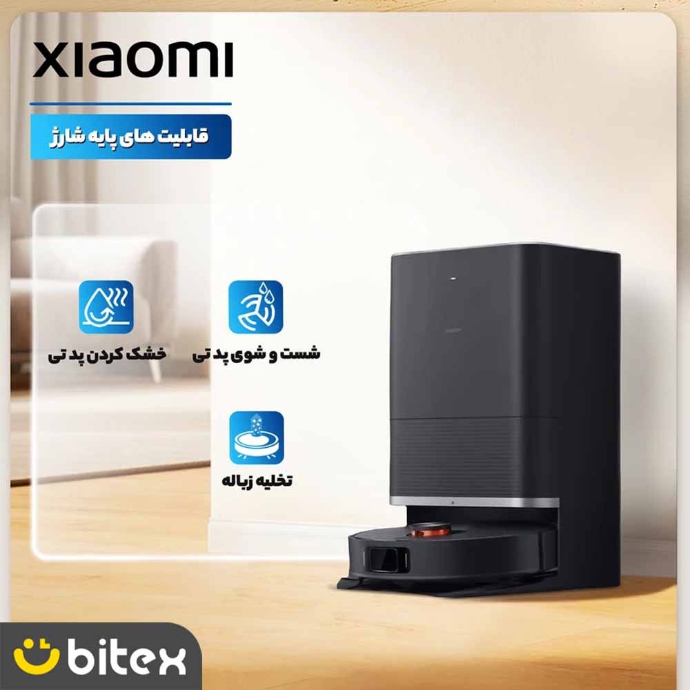 نقطه تمایز اصلی جارو رباتیک شیائومی مدل Robot Vacuum X20 Max، ایستگاه شارژ فوقپیشرفته آن است. این ایستگاه مجهز به سیستم شستوشوی پد با آب گرم ۵۵ درجه سانتیگراد است. این دما به طور موثری لکههای چربی و باکتریهای چسبیده به پدهای تیکشی را از بین میبرد. پس از اتمام شستوشو، دستگاه فرآیند خشک کردن با جریان هوای گرم را آغاز میکند که حدود ۳ ساعت طول میکشد. این کار از ایجاد بوی نامطبوع، رشد کپک و تکثیر باکتری در پدها جلوگیری میکند. همچنین مخازن بزرگ (۴ لیتر آب تمیز و ۳.۸ لیتر آب کثیف) به دستگاه اجازه میدهند مساحتی تا ۲۰۰ متر مربع را بدون نیاز به شارژ مجدد مخزن، تیکشی کند.